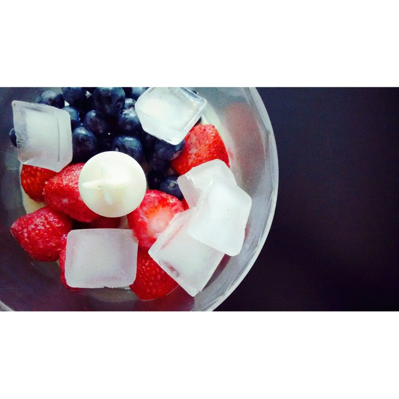 1. Doe de blauwe bessen, de aardbeien, de melk, de ijsblokjes en de honing in een blender en mix gedurende 2 minuten.