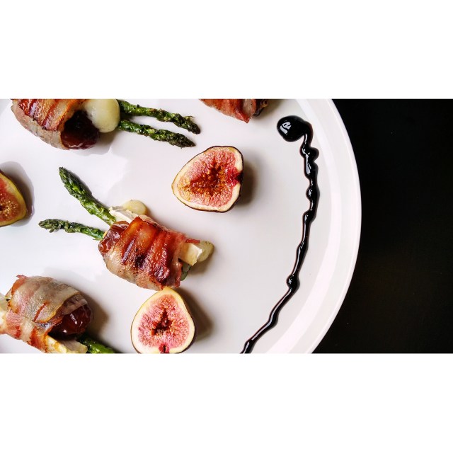 Dadels met gegrilde groene aspergetips, geitenkaas en spek en ovengebakken vijgen met honing 26 november 201627 oktober 2018