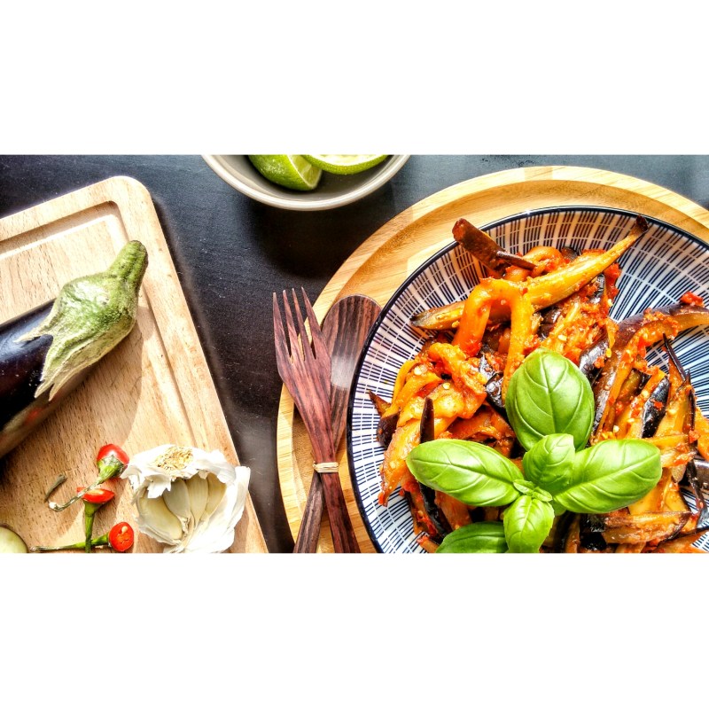 Een zeer pittig Indonesisch bijgerecht met sambal op basis van aubergines.
