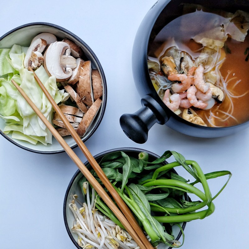Een hot pot kent zeer veel varianten. Zowel voor de bouillon, de groenten als de keuze tussen vlees of vis. Jij kiest zelf wat je er allemaal ingooit naargelang je smaakpatroon! Je kan ook kip, kalkoen, rundvlees, varkenvlees, … toevoegen of het lekker vegetarisch houden en werken zonder vlees. Up to you 😉