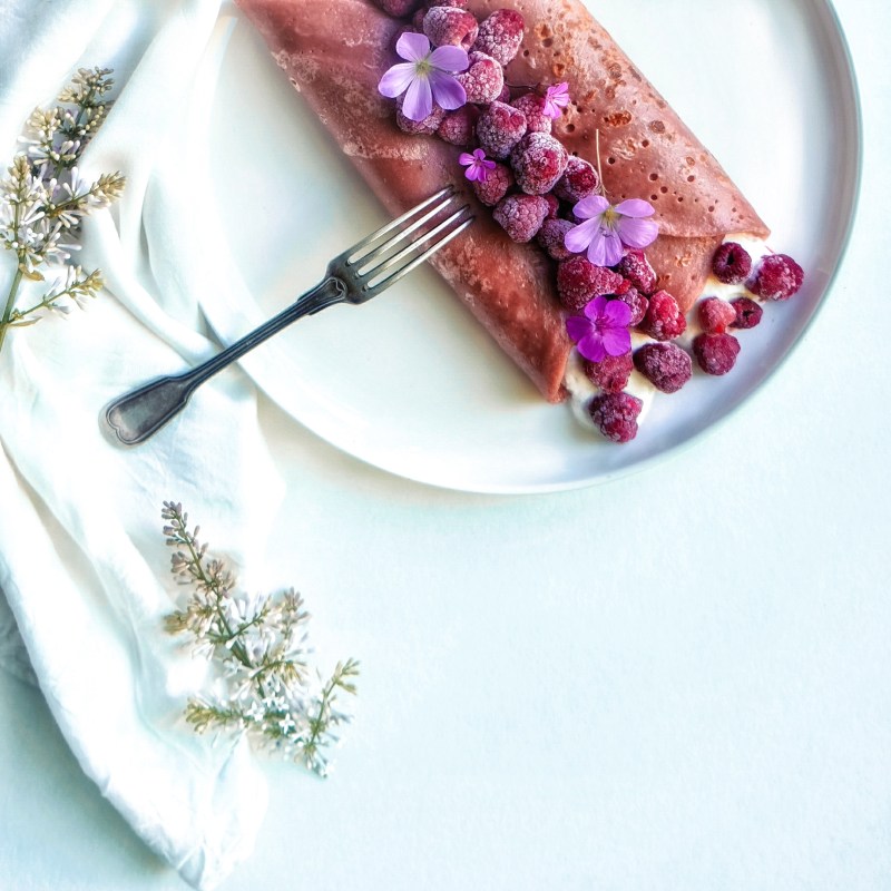 Speciaal voor de mama’s op Moederdag, zoete roze pannenkoeken! Verras haar morgen met een vrolijk ontbijtje op bed in plaats van dat cliché bloemenboeket 😉