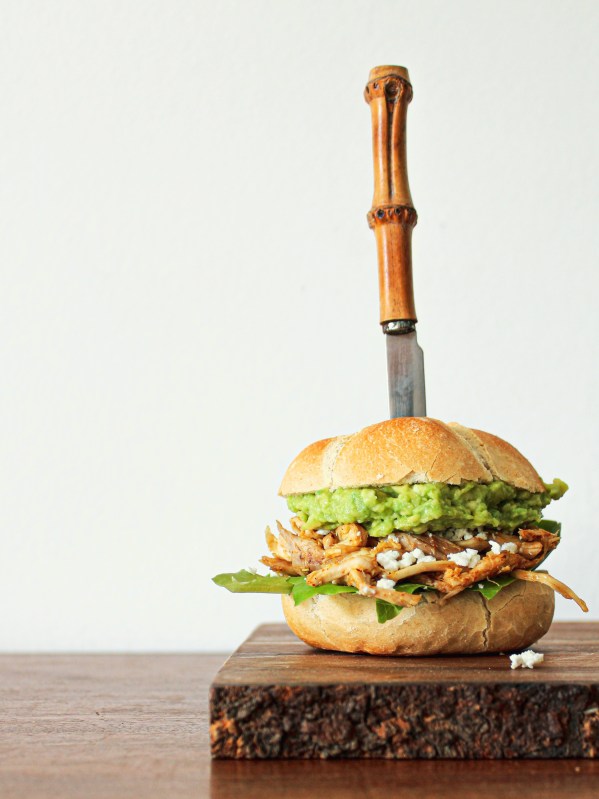 Beleg ze met wat sla, pulled chicken, verbrokkelde fetakaas en avocado.