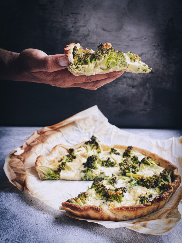 Verdeel er de broccoli en de kaas in en overgiet dit met het eimengsel.