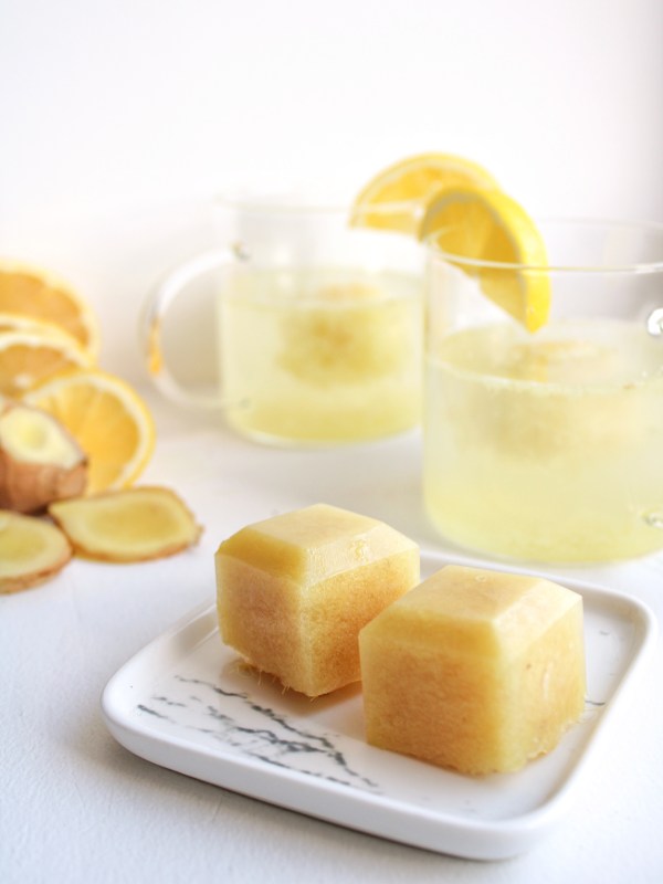 - Doe de stukken gember in de blender met het sap van twee citroenen en een scheut water.