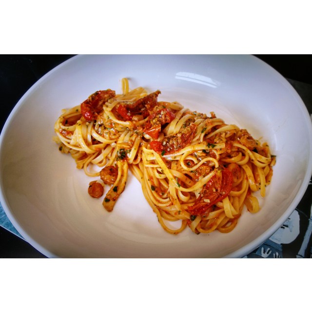 Linguine met zeevruchten en zongedroogde tomaten in een getomateerde sherrysaus 29 september 201627 oktober 2018